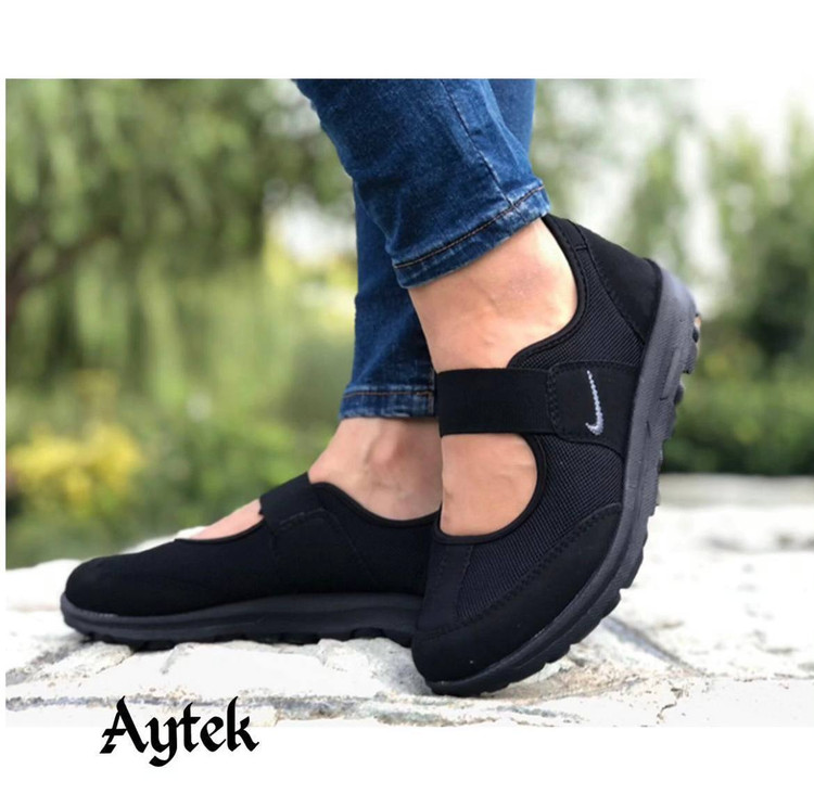 این کفش زنانه مشکی که در تصویر میبینیم، ظاهری اسپرت و راحت دارد و مناسب استفاده روزمره و پیادهروی است.
