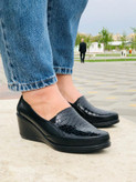 کفش زنانه لژدار رویه سنگی ورنی چرم طبیعی