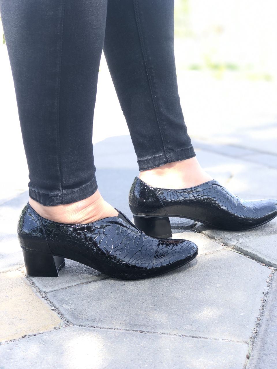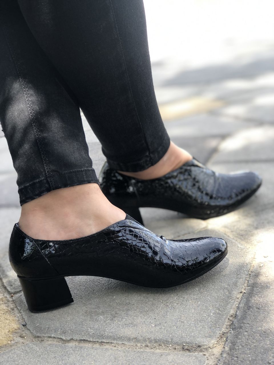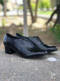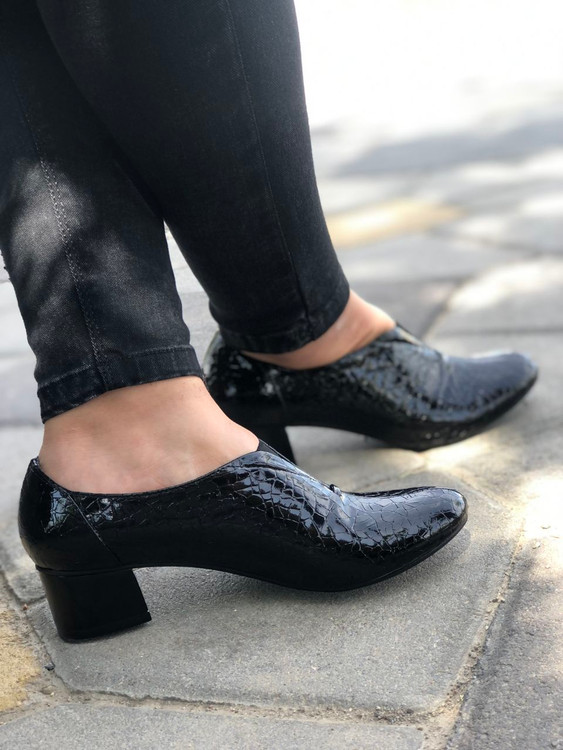این کفش زنانه دستدوز، با طراحی خاص و رویه چرمی ورنی طرح سنگی، انتخابی بینظیر برای خانمهایی است که به کیفیت و زیبایی اهمیت میدهند.